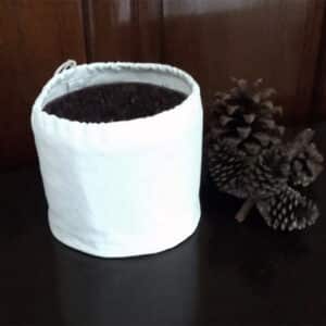 Place your indoor or flowering plants in these beautiful planters for a warm and homely touch to your interiors. The planters are made of geotextile with a changeable washable cover on the outside. A 6 inch pot with a tray can be placed within this planter. The beautiful jute adorned top part can be tightened with a drawstring. This also covers the inner pots rim.